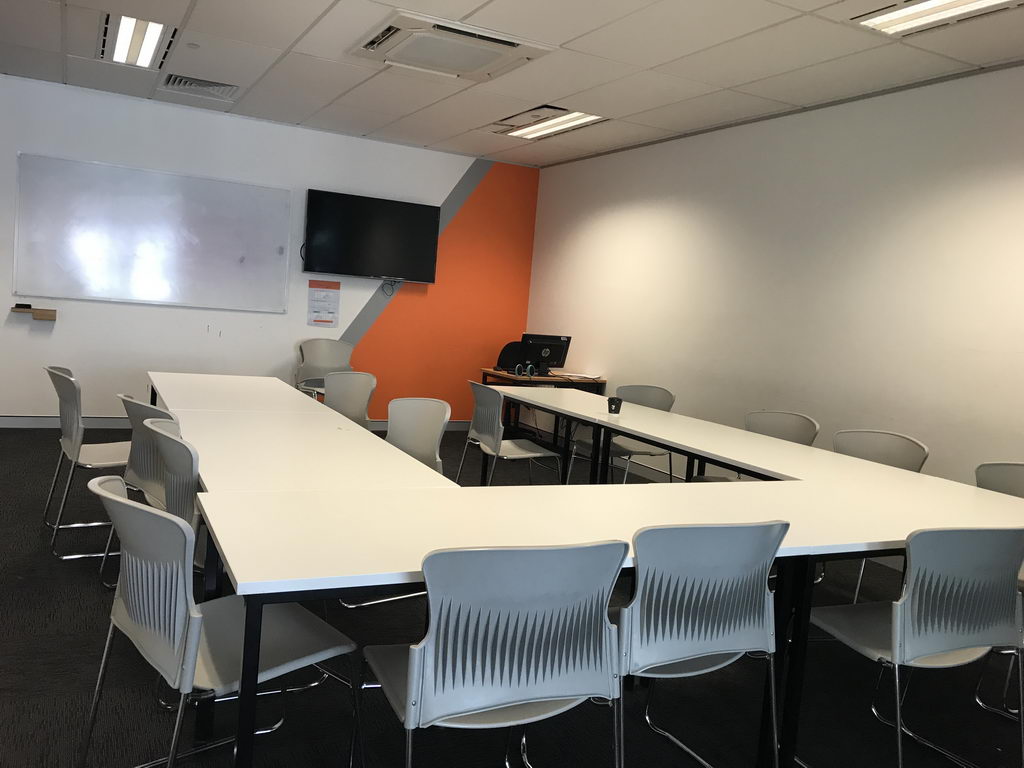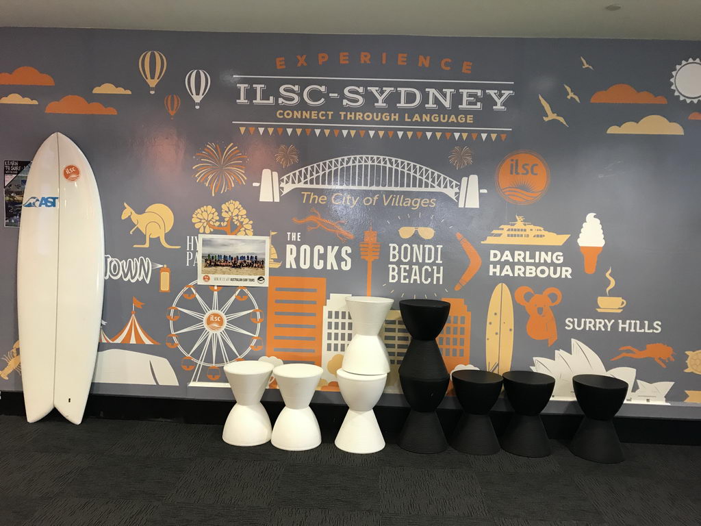 ด้านในของ ILSC Sydney ก็จะตกแต่งเน้นโทน ขาวส้ม โทนสีของ ILSC ที่มีความสดใส