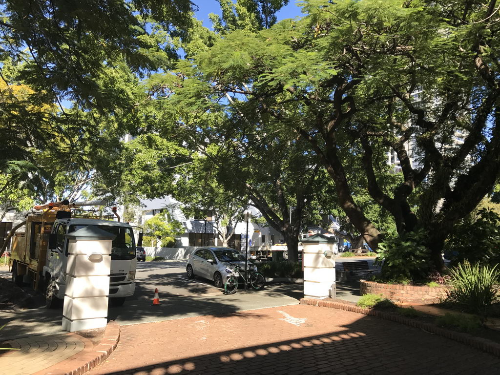 ตึกเรียนและต้นไม้ใหญ่ร่มรื่นหน้า Inforum Education