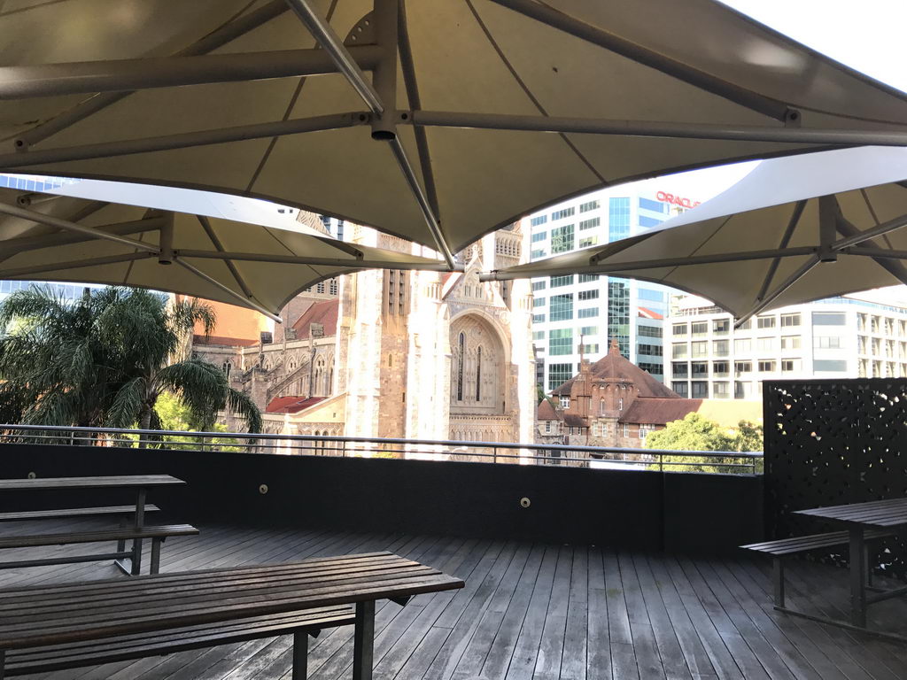 เดินออกมาจากบริเวณ Café ก็จะเจอกับลานด้านนอก ให้นั่งพักผ่อน ชมวิวเมืองและโบสถ์ St John’s Cathedral ด้านนอกกันค่ะ