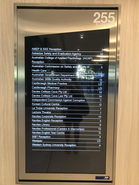 เข้าไปด้านในอาคาร จะเห็นป้ายบอกชั้นต่างๆ ซึ่ง Navitas English จะอยู่ที่ชั้น 3 ค่ะ