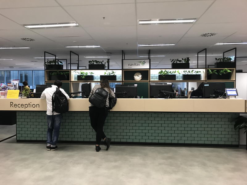 ขึ้นไปถึงชั้น 3 แล้วก็จะเห็น Reception ของ Navitas English วันแรกที่น้องๆ ไปถึงโรงเรียน สามารถติดต่อทาง Reception ก่อนได้เลยค่ะ