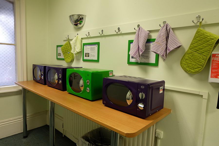 น้องคนไหนที่เตรียมอาหารมา ก็สามารถมาอุ่นที่ไมโครเวฟสีสันสดใส บริเวณนี้ได้ค่ะ