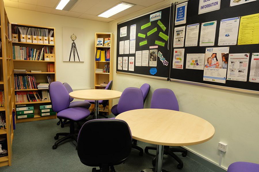 น้องๆ คนไหนเรียนๆ อยู่แล้วเกิดง่วง ที่นี่ก็มีเครื่องชงกาแฟ Nespresso เครื่องใหญ่ไว้คอยบริการด้วยค่ะ และทางด้านซ้ายมือก็จะเห็นโปรชัวร์แนะนำสถานที่ท่องเที่ยวต่างๆ ในลอนดอนและอังกฤษ สามารถหยิบกันได้เลยนะคะ